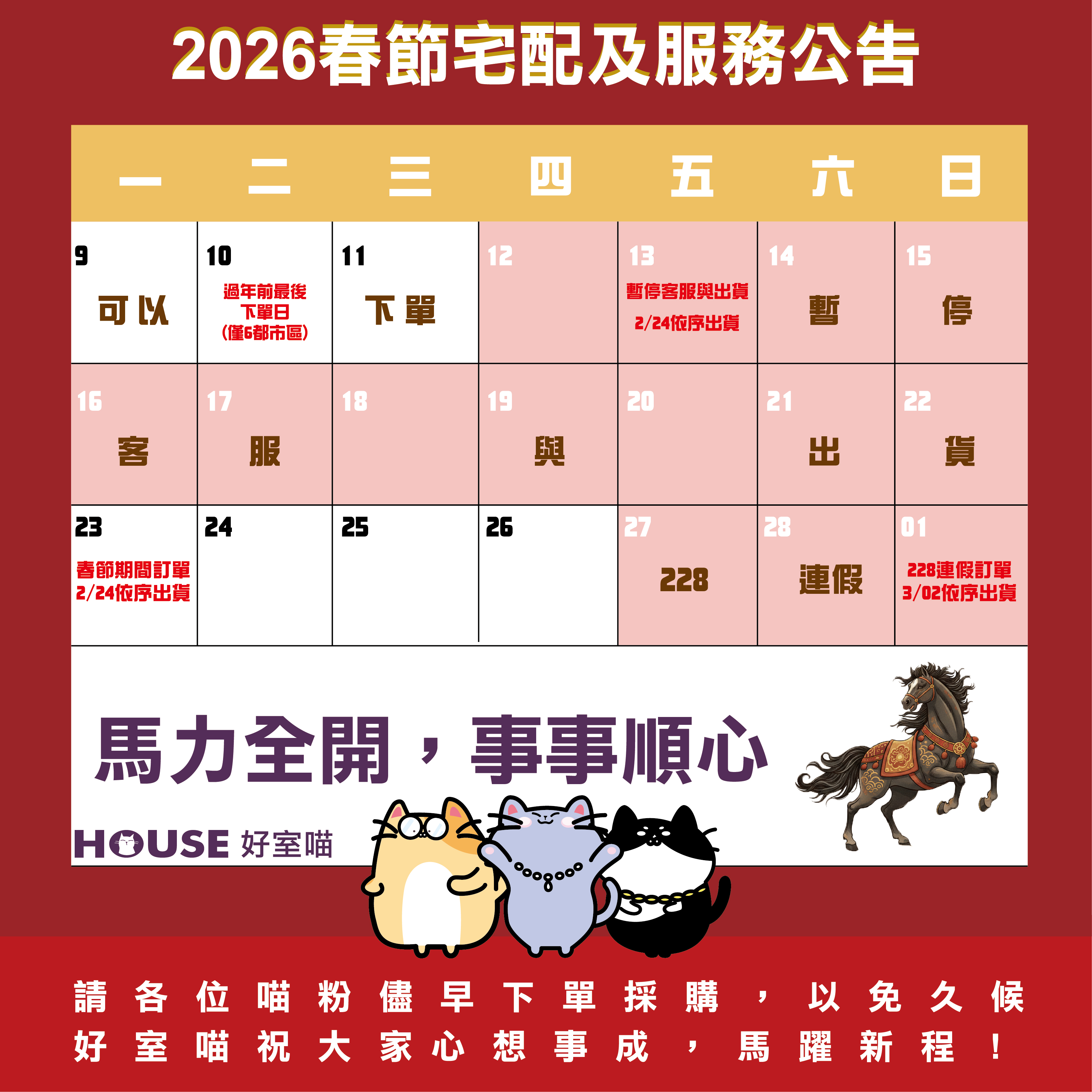 2026春節宅配及服務公告